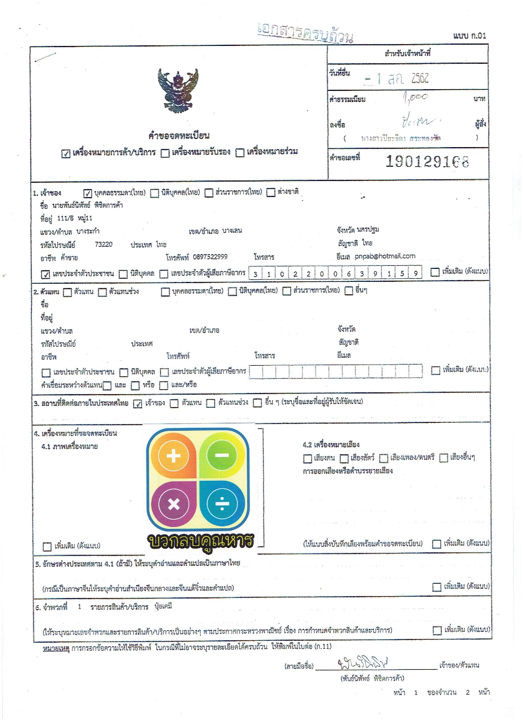 หลังจากที่ได้ ไฟล์รูปมาแล้ว เราก็ไปโหลด แบบฟอร์มจากเว็บ ของกรมทรัพย์สินทางปัญญา ก01 แล้วกรอกเอกสารพร้อมแปะรูปให้ครบถ้วน เอกสารที่ประกอบคือบัตรประชาชน ของเจ้าของโลโก้ หากมีตัวแทน ก็ต้องใช้บัตรประชาชนของตัวแทนด้วยนะครับ (ถ้าอยากตรวจสอบคำเหมือนคล้าย ให้เข้าเว็บ www.ipthailand.go.th) เพื่อตรวจสอบความเหมือนคล้าย ก่อนยื่นจดทะเบียนจริงได้ครับ ว่าจะไปซ้ำกับใครไหม