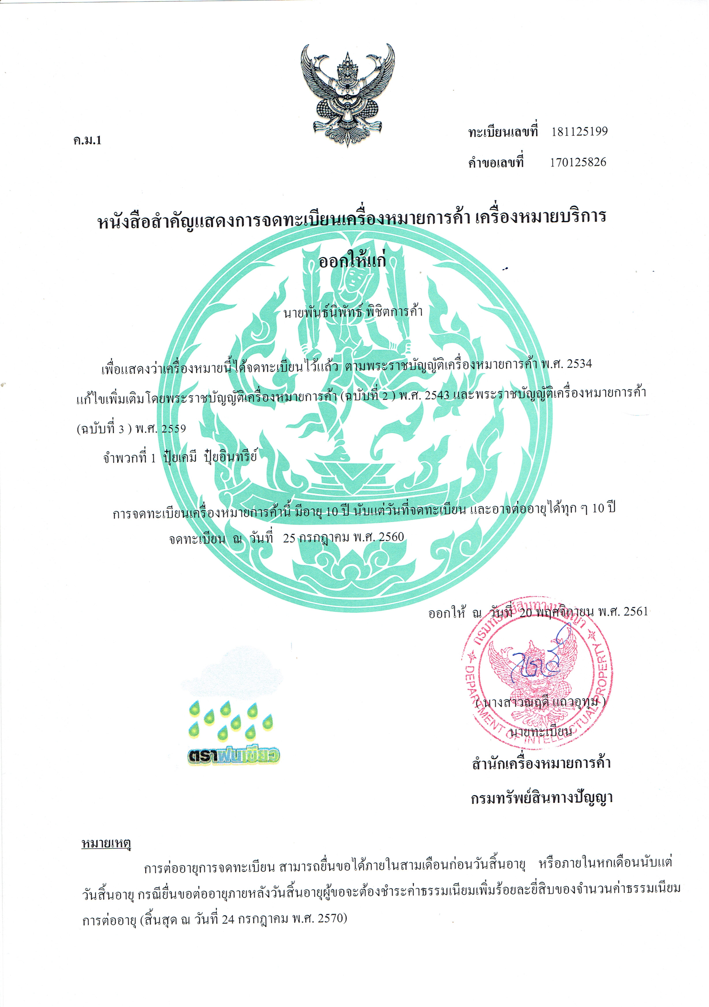 โลโก้ ตราฝนเขียว ประเภท 1 ปุ๋ยเคมี<====ขายแล้ว