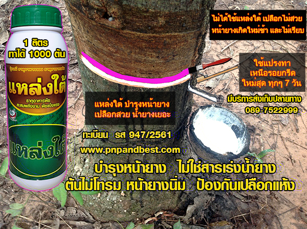 บำรุงหน้ายาง คุณภาพหลักพันราคาหลักร้อย บำรุงต้นยางไม่เร่งน้ำยาง ไม่เป็นอันตรายต่อต้นยาง ยืออายุการกรีดยางได้ดี รักษาเชื้อราได้ดีเยี่ยม 1ขวดลิตร 450 บาท ใช้ได้ 1000 ต้น สอบถามและสั่งซื้อ 0897522999 www.pnpandbest.com มีเก็บเงินปลายทางครับ ทิ้งชื่อที่อยู่และเบอร์โทรในอินบล๊อกได้เลยครับ