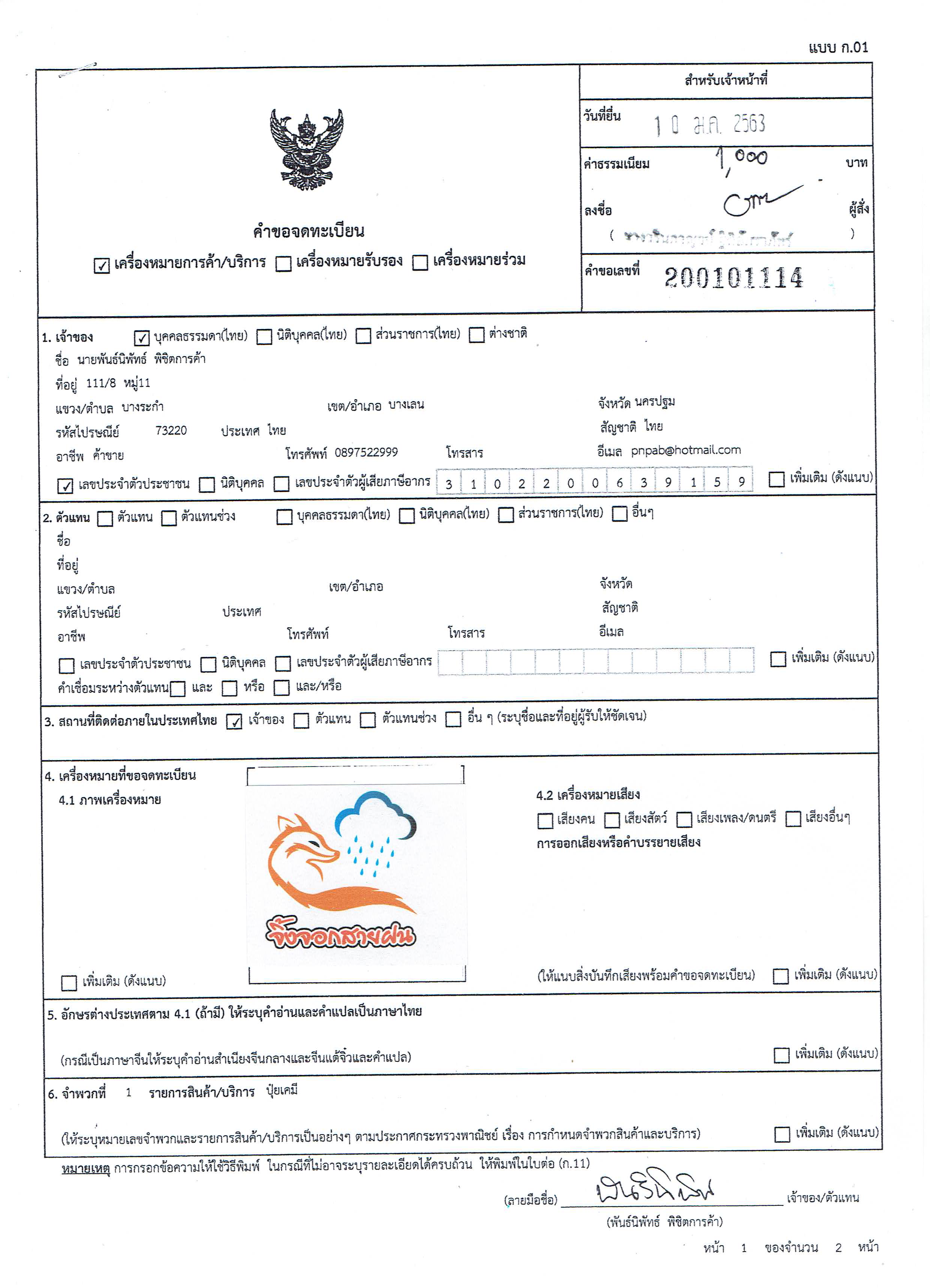 หลังจากที่ได้ ไฟล์รูปมาแล้ว เราก็ไปโหลด แบบฟอร์มจากเว็บ ของกรมทรัพย์สินทางปัญญา ก01 แล้วกรอกเอกสารพร้อมแปะรูปให้ครบถ้วน เอกสารที่ประกอบคือบัตรประชาชน ของเจ้าของโลโก้ หากมีตัวแทน ก็ต้องใช้บัตรประชาชนของตัวแทนด้วยนะครับ (ถ้าอยากตรวจสอบคำเหมือนคล้าย ให้เข้าเว็บ www.ipthailand.go.th) เพื่อตรวจสอบความเหมือนคล้าย ก่อนยื่นจดทะเบียนจริงได้ครับ ว่าจะไปซ้ำกับใครไหม