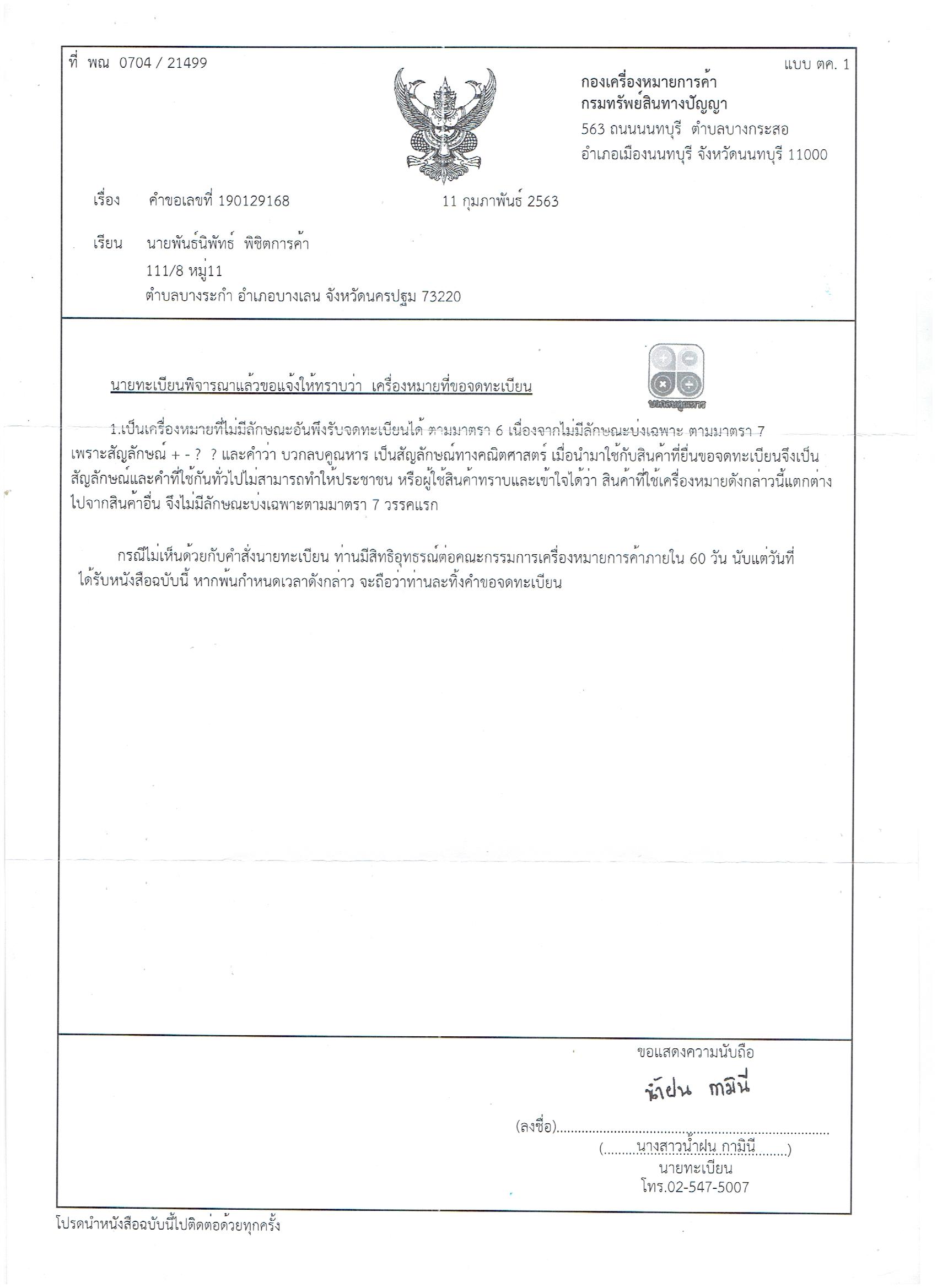 กรณีจดไม่ผ่าน จะมีหนังสือส่งมาแบบนี้ครับ