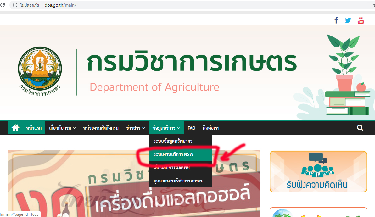 พอได้ยูสเซอร์และพาสเวิดมาแล้ว ก็ใช้งานได้เลยนะครับ วิธีเข้าใช้งานเข้าไปที่ www.doa.go.th แล้วเลือกตามรูป