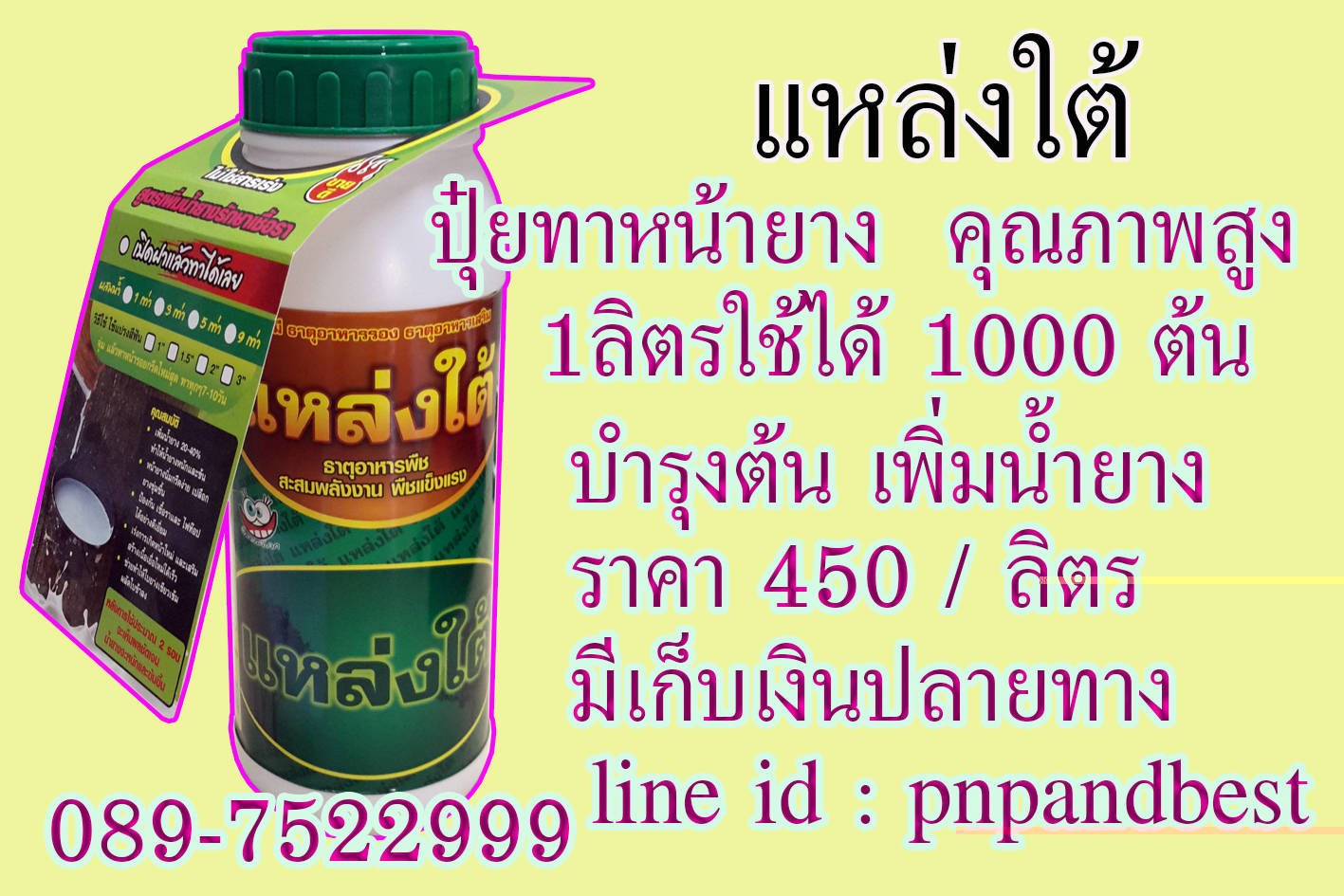 แหล่งใต้ เป็นยาทาหน้ายาง ช่วยให้หน้ายางนิ่มกรีดง่าย เพิ่มน้ำยางได้20-30 เปอร์เซนต์ บำรุงต้นยาง รักษาเชื้อรา ราดำเส้นดำ ราชมพู หน้ายุง หน้าเน่าโคนเน่า เชื้อราที่เกิดจากไฟท๊อปเธอร่า 1ขวด (ลิตร) ทาได้ 1000 ต้นหรือประมาณ12-13ไร่