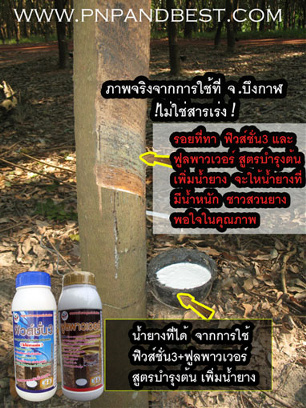 ฟิวส์ชั่น3 สูตรบำรุงต้น-เพิ่มน้ำยาง (ใช้กับต้นยางที่ให้น้ำยางปกติ) - ขนาด100ซีซี หนึ่งขวด ผสมน้ำได้1ลิตร ทาหน้ายางได้ 600-800 ต้น ฟิวส์ชั่น3+ฟูลพาวเวอร์ สูตรบำรุงต้น-เพิ่มน้ำยาง (ใช้กับต้นยางที่ให้น้ำยางปกติ) - ขนาด100ซีซี+100ซีซี ผสมน้ำ 1.5-2 ลิตรทาหน้ายางได้1,200-1,600 ต้น รูปจริงจากสวน จ.บึงกาฬที่ใช้สูตรเพิ่มปริมาณน้ำยาง ฟิวส์ชั่น3+ฟูลพาวเวอร์ update 05/12/2012